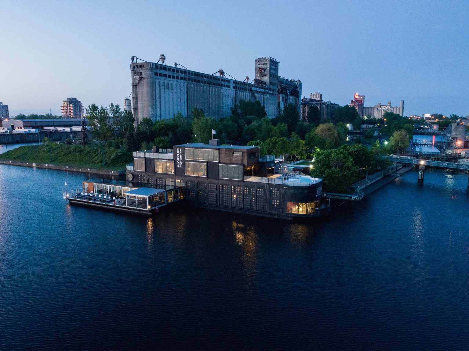 Amarré au Vieux-Port de Montréal, Bota Bota, spa-sur-l’eau offre à ses passagers les bienfaits salutaires d’un spa, alliés au mouvement naturel berçant du fleuve St-Laurent. Dans un décor enchanteur, avec le Vieux-Montréal en trame de fond, ce spa flottant, création novatrice et mystérieuse, propose à sa clientèle un accès privilégié au fleuve tout en lui permettant de profiter des vertus à la fois relaxantes et vivifiantes du circuit d’eaux.